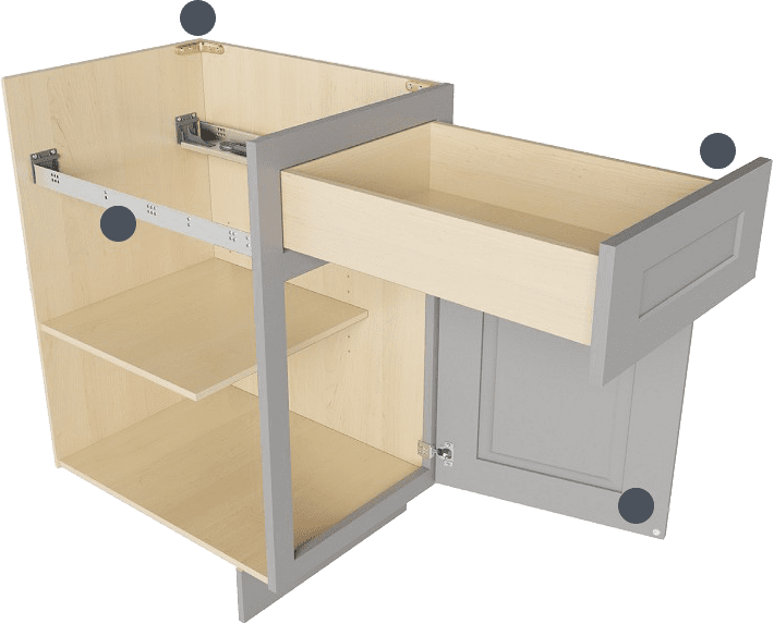 Metal Bracket: corner bracket reinforcements in base cabinets for maximum stability.